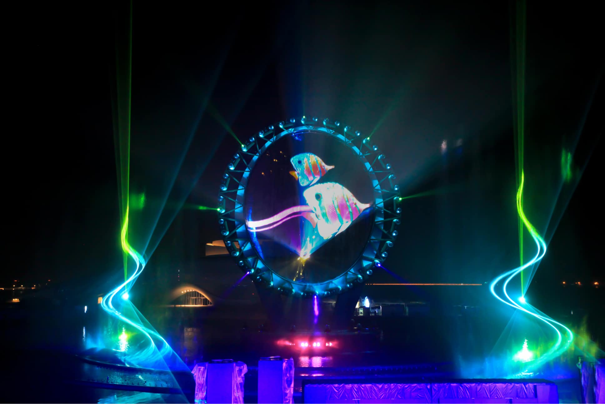 The “cascade screen”®, a 35m-high water curtain, features the O structure, which stands 45m high. Innovative and original effects. Hundreds of multimedia effects and water jets combined.