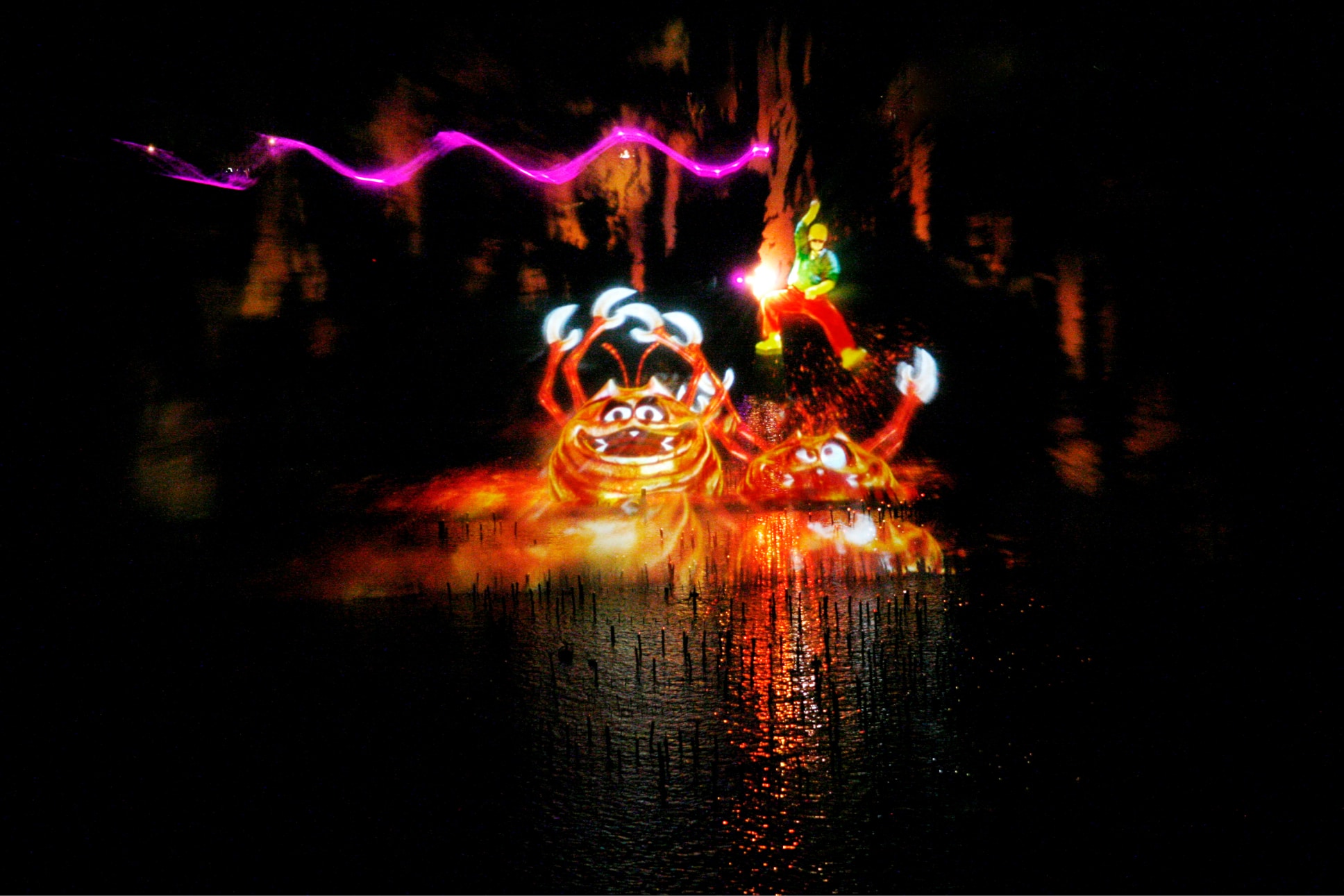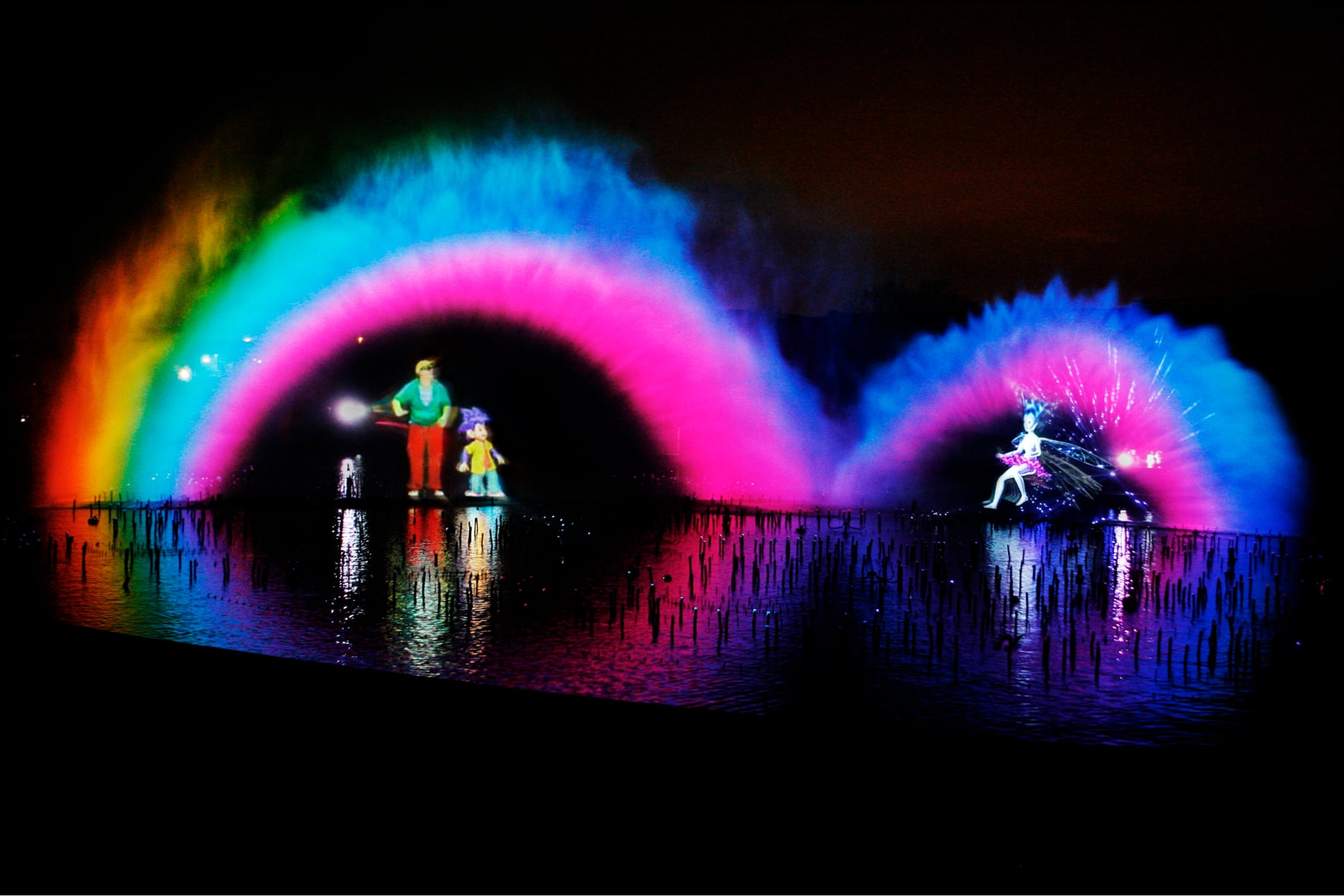 Thanks to three water screens, fountains, light, laser and pyrotechnic effects, the story is told at a dynamic pace to thousands of spectators every evening in the open-air theatre of Futuroscope.